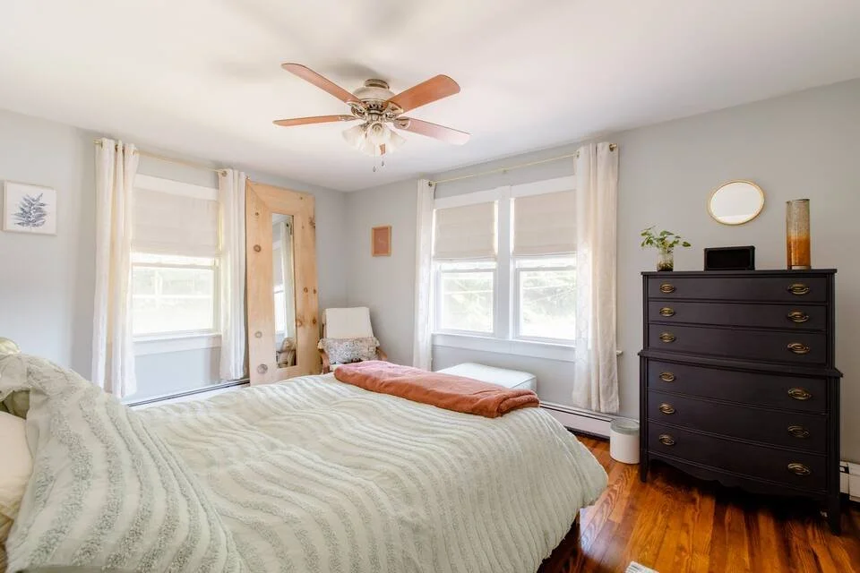 is a 1920s duplex, originally built for executives of the old paper mill. The charming classic detailing meets modern appeal with an updated eat-in kitchen, Jacuzzi soaking bathtub, front-end loading washer and dryer, original hardwood flooring throughout, ceiling fans in all bedrooms, Nest Aware security system, home gym, decorated cozy front porch, fenced-in backyard with a fire pit, loungers, and a separate area for outdoor dining.